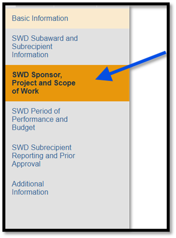 Figure 1. SWD Sponsor, Project and Scope of Work SmartForm.
